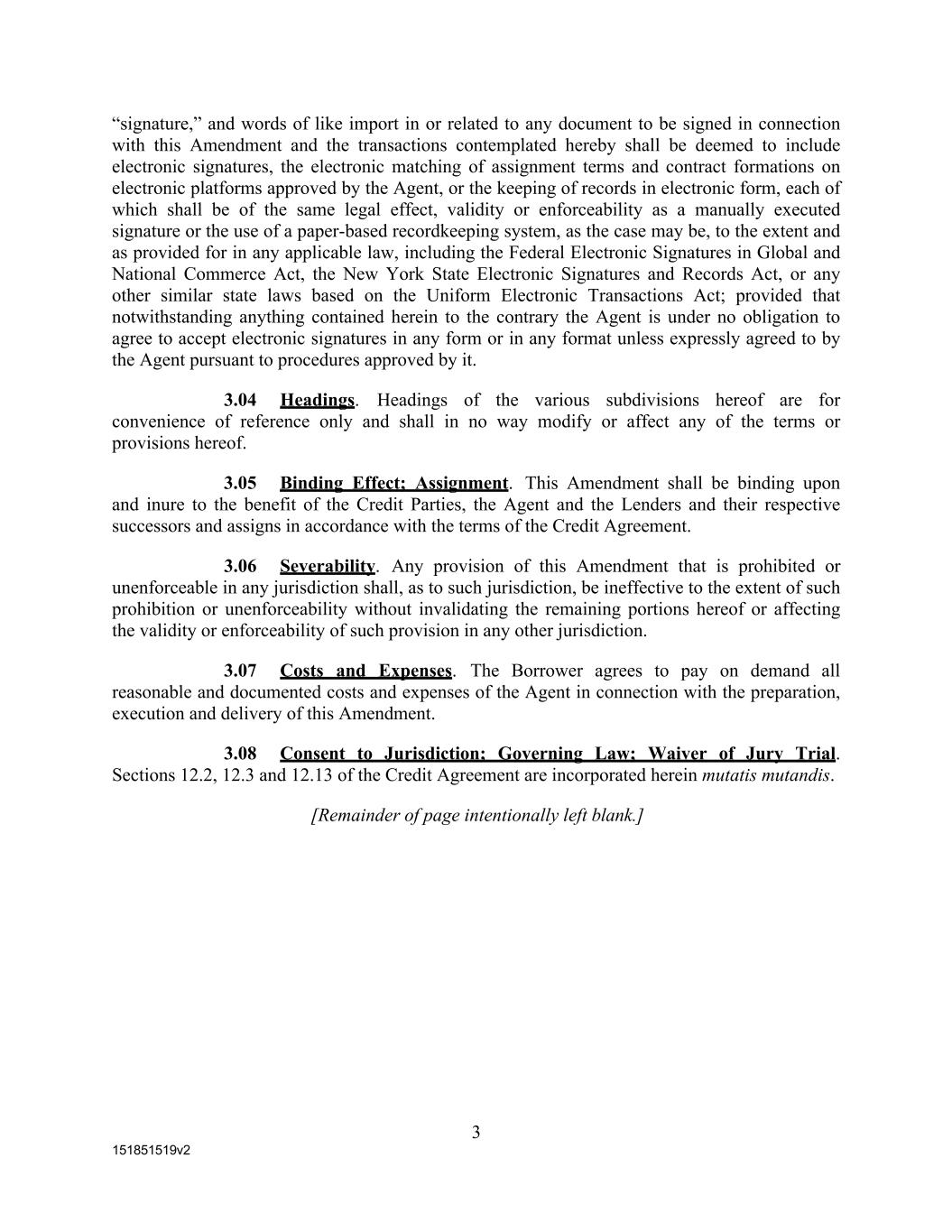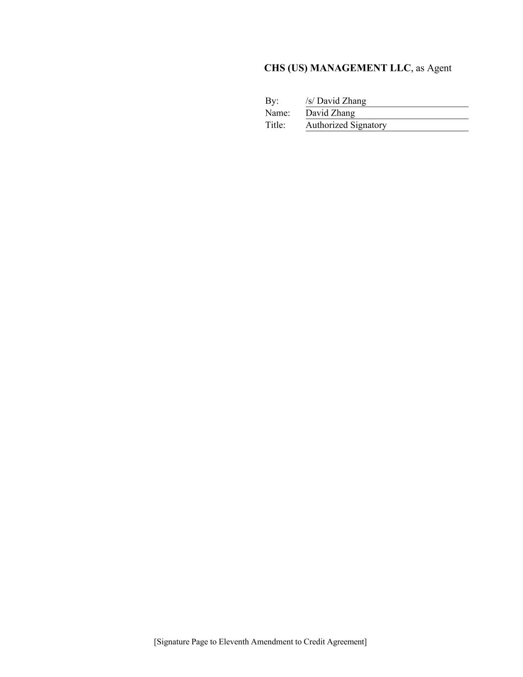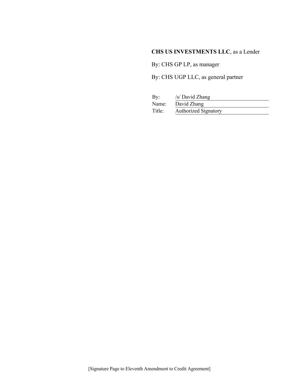 10.3†X | | Eleventh Amendment to the Credit Agreement, dated as of March 31, 2025, (as previously amended on December 1, 2023, July 23, 2018, December 21, 2018, April 24, 2019,November 26, 2019, June 2, 2020, August 18, 2020, October 26, 2020, October 18, 2021 and January 31, 2023), by and among the Company, the lenders from time to time party thereto and CHS (US) Management LLC., as administrative agent. | | | | | | | | | | * |
